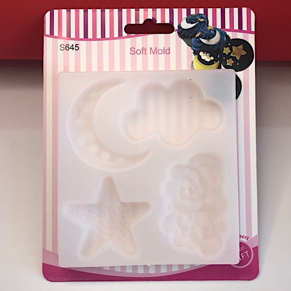 Простой в использовании силиконовый молд с фигурами: месяц, звезда, облака.