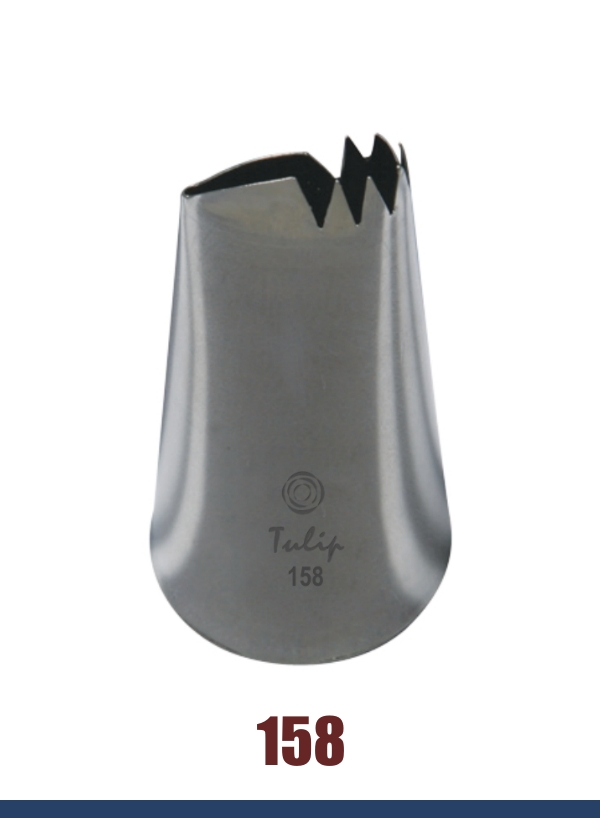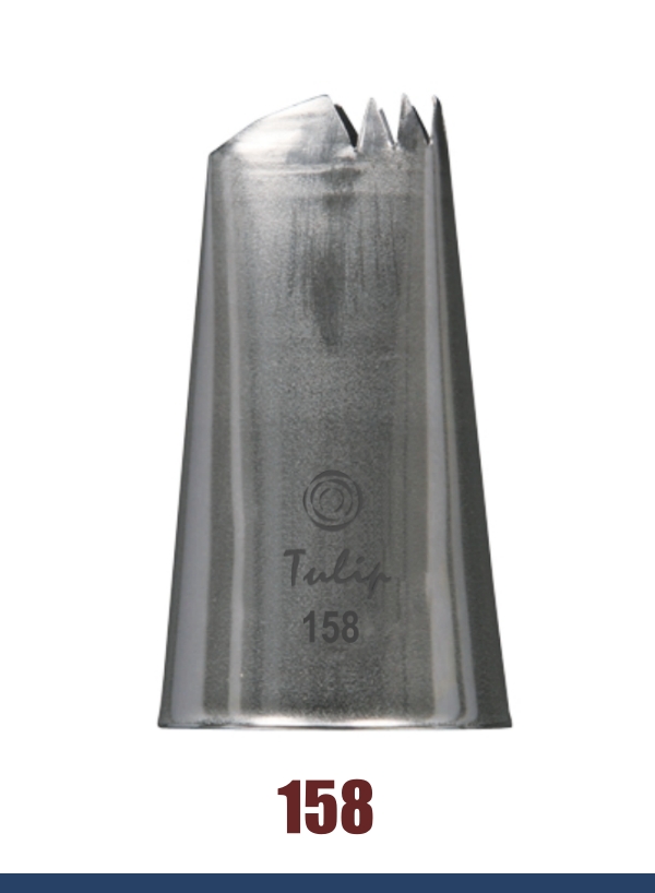 Первоклассная кондитерская насадка №158 Tulip от Мастерской Тюльпан, сделана в Корее, это прямой лепесток с зубчиками, длина прорези 15 мм. Кондитерские насадки Tulip приятно взять в руки, а работа с ними доставит вам удовольствие.